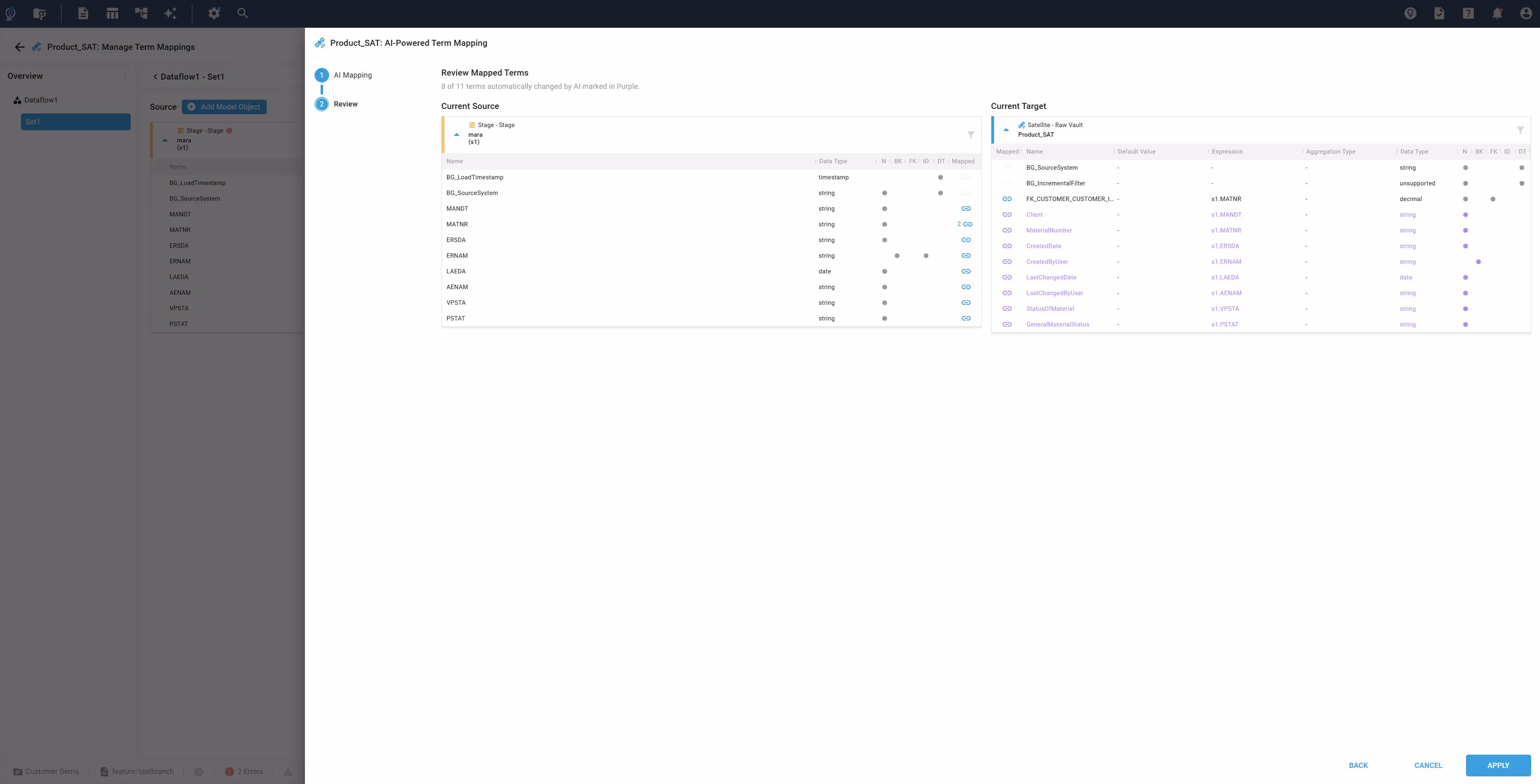 This preview-feature that uses AI to automatically map and translate technical or cryptic source system fields such as SAP field names, into business-friendly terminology. It also supports custom instructions, allowing users to tailor mappings, and optimize their workflow with complex source structures.