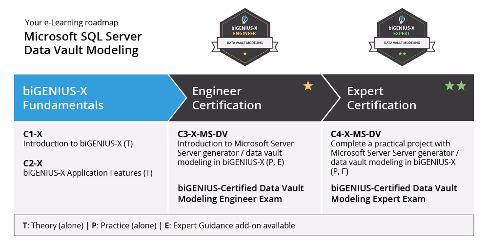 Learn about data vault modeling with the biGENIUS-X Microsoft SQL Server generator in this hands-on practice module, and earn your Engineer certificate.